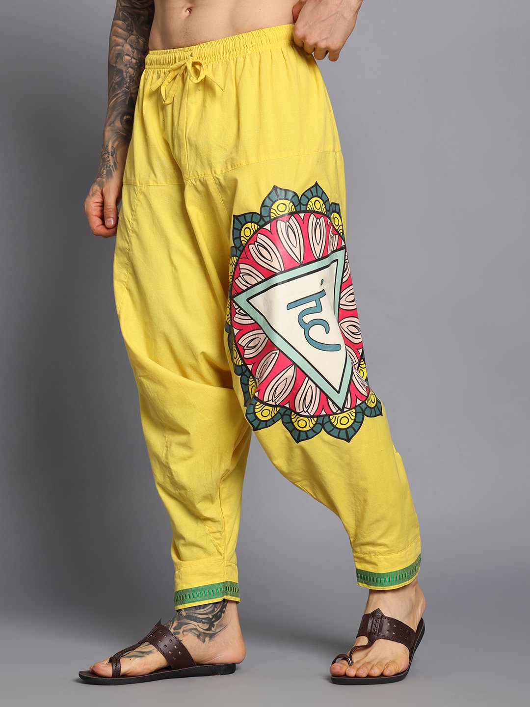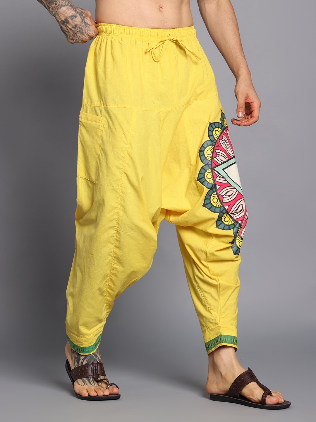 Men’s Cotton Loose Fit Harem Pants (Yellow / Green)