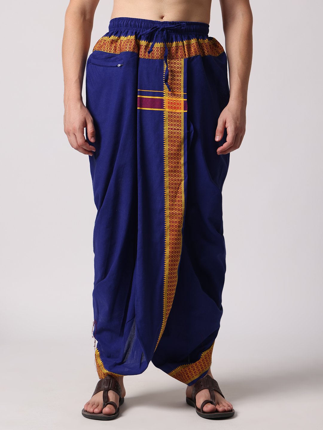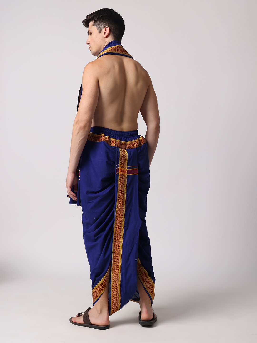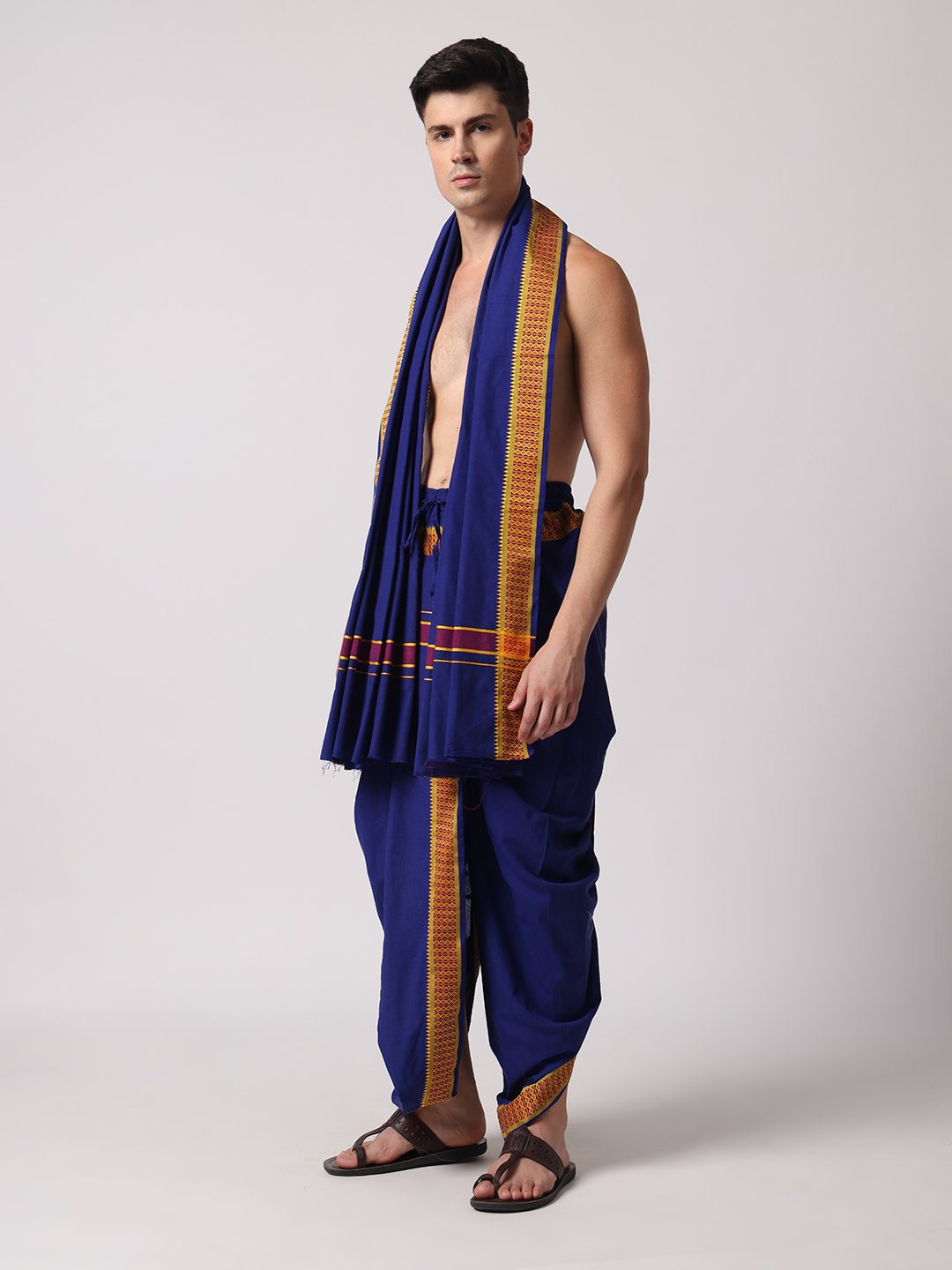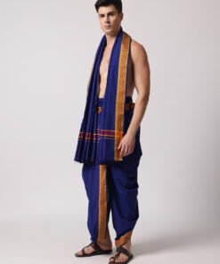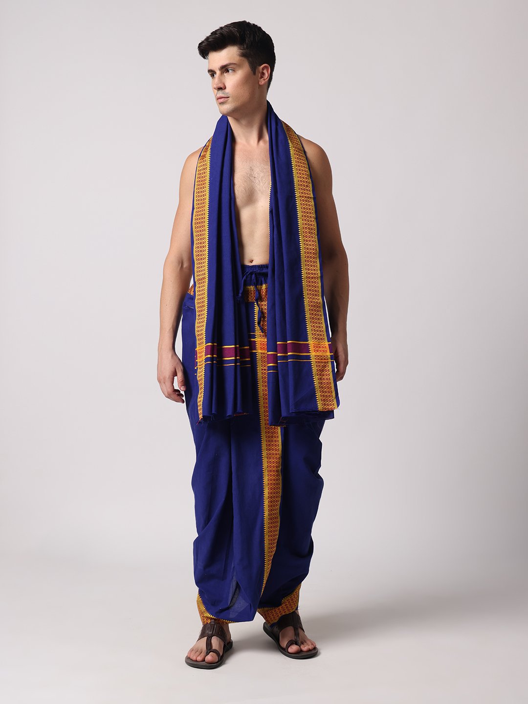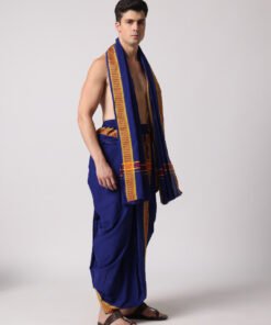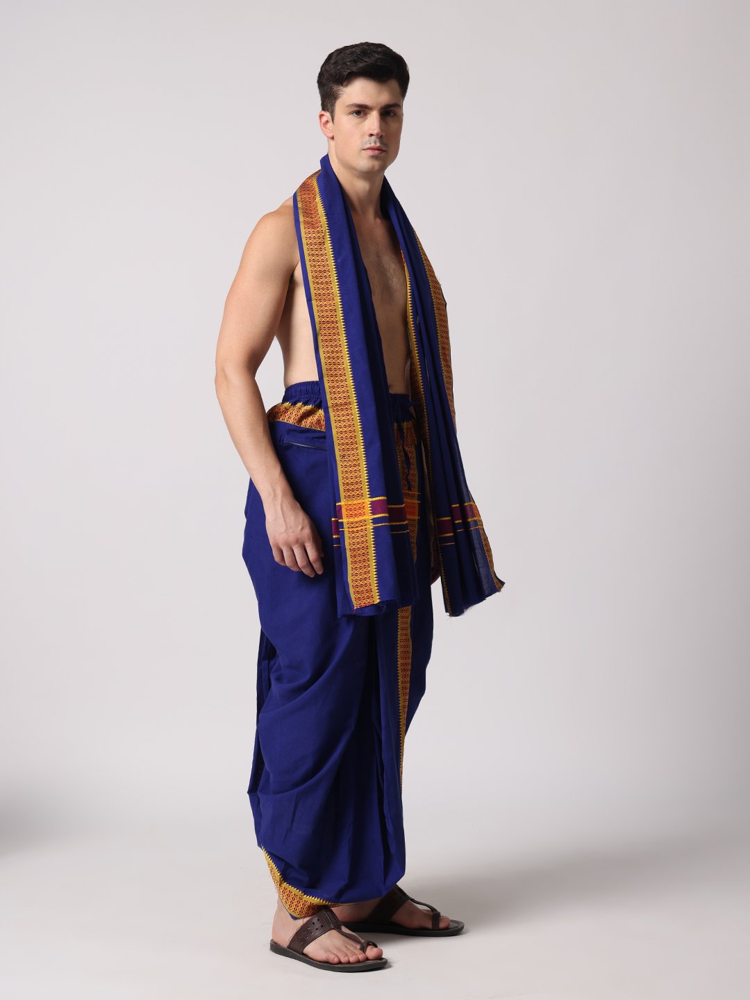 Men’s Cotton Loose Fit Devotional Panchakacham & Angavastram (Royal Blue)