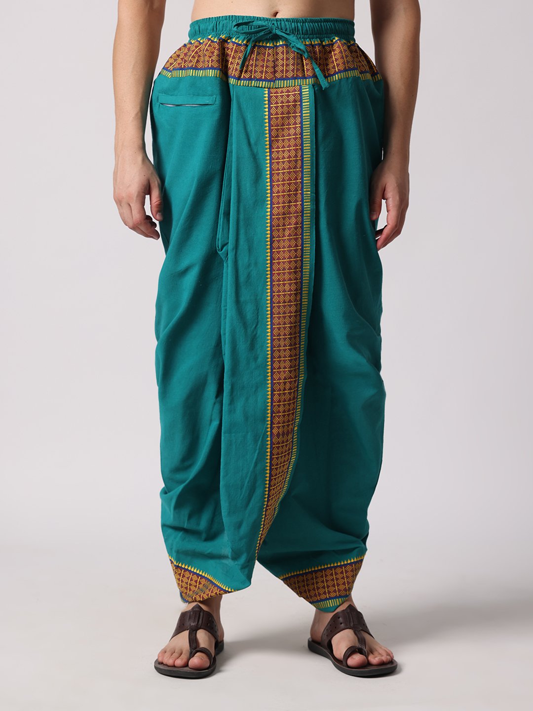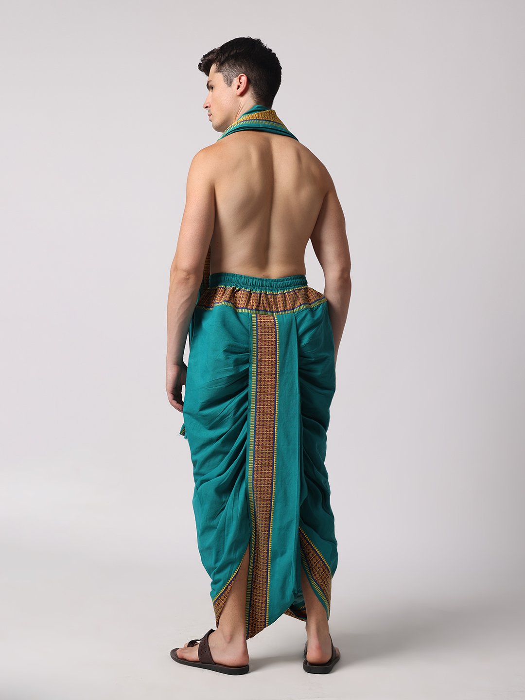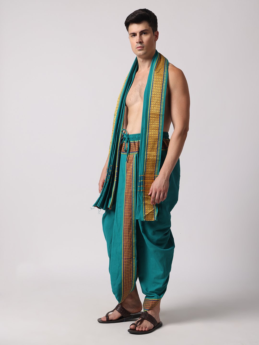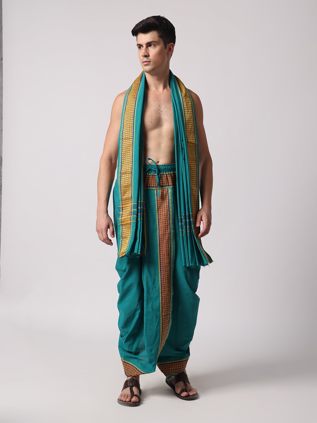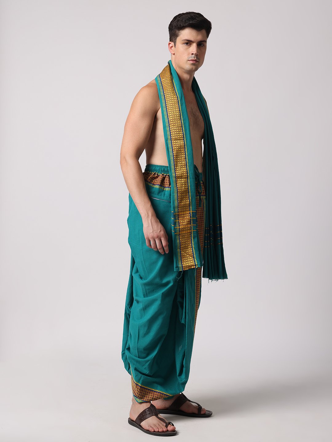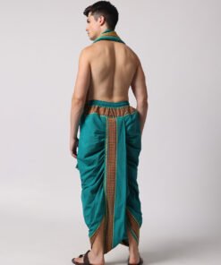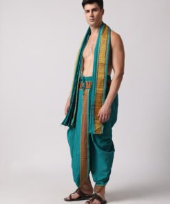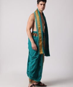 Men’s Cotton Loose Fit Devotional Panchakacham & Angavastram (Teal Green)