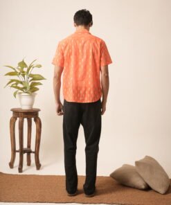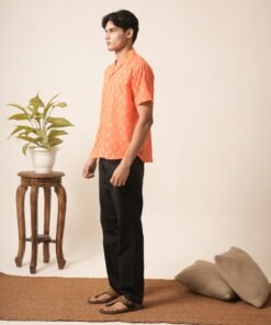 Men’s Cotton Oversized Embroidery Shirt (Orange)