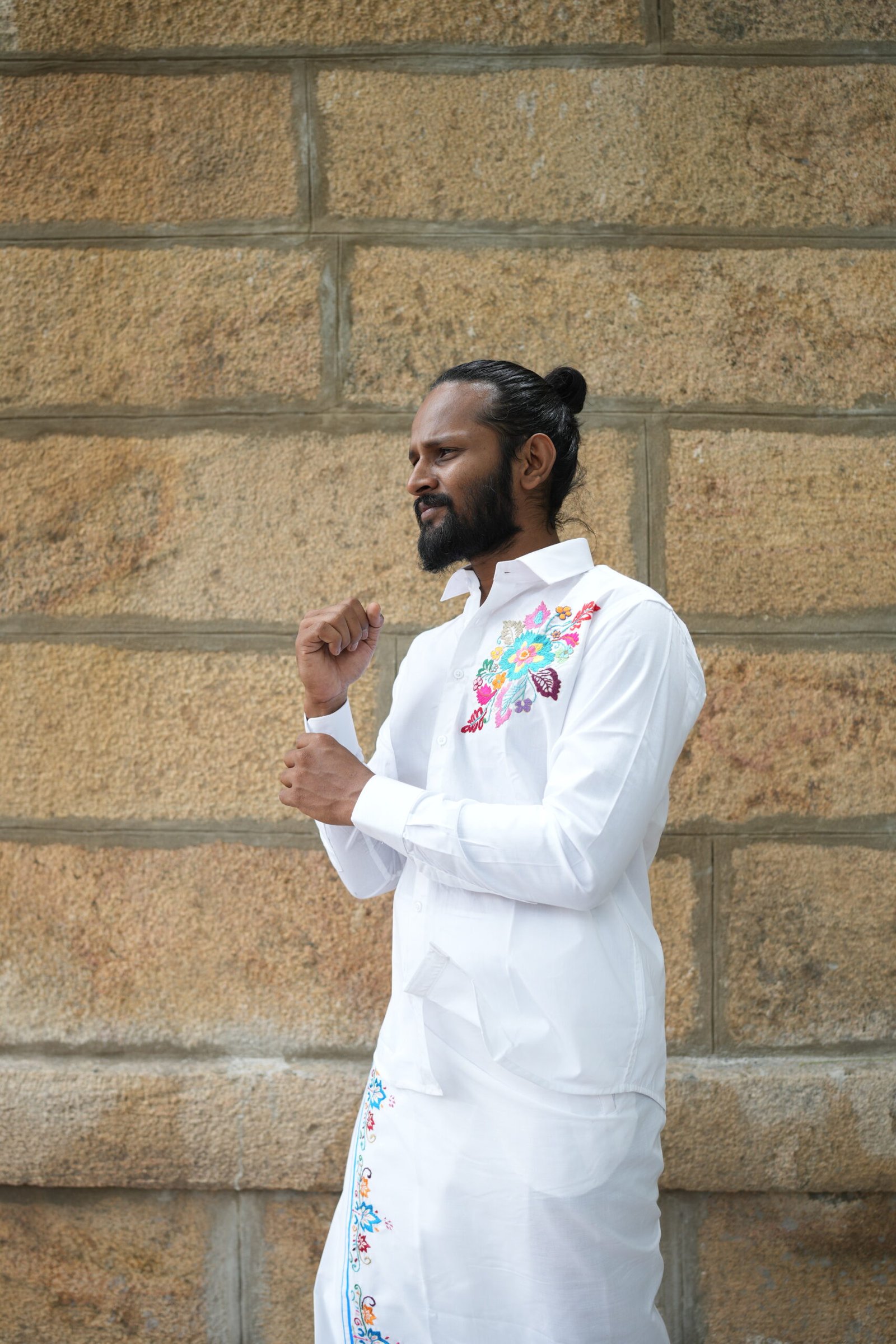 Men’s Cotton Customizable Floral Ensemble Full Sleeve Shirt & Dhoti Set