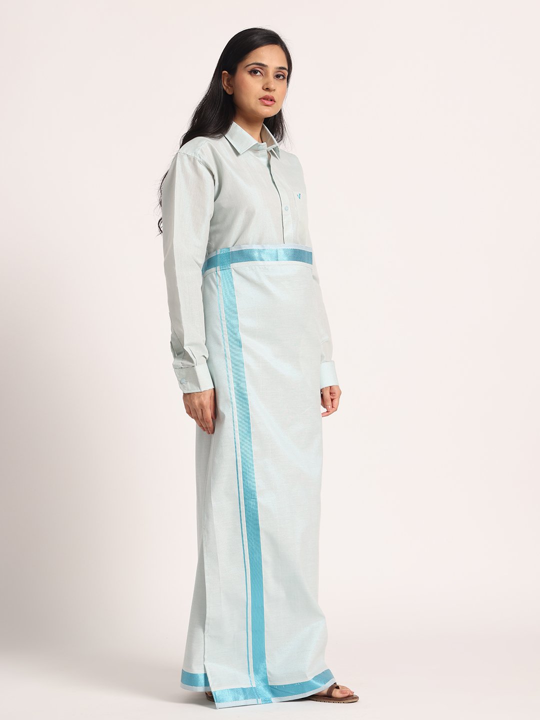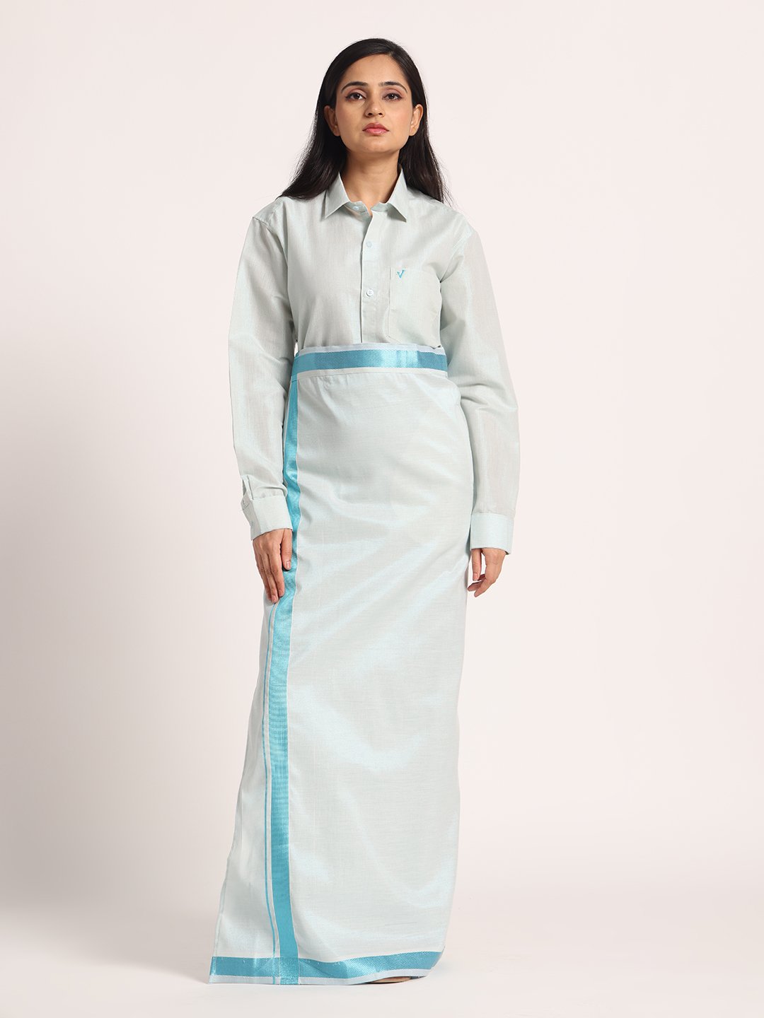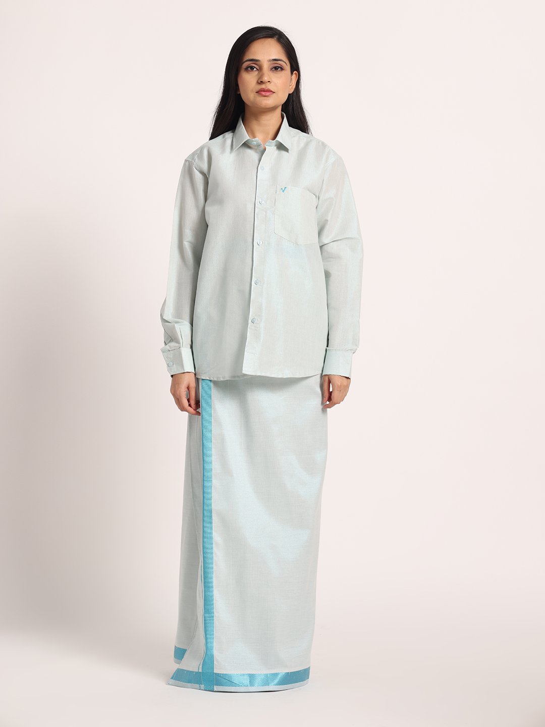 Step into elegance with this Cotton-Lurex Shirt and Matching Dhoti Set for women, crafted to reflect traditional charm with a modern touch. Made from premium cotton-lurex fabric, the shirt features an intricate woven texture and a subtle sheen that enhances its festive appeal. Paired with a coordinated dhoti, this set offers both comfort and sophistication, which is perfect for weddings, religious functions, and cultural celebrations. Designed for those who appreciate refined ethnic style, this set ensures you stand out with grace and confidence.